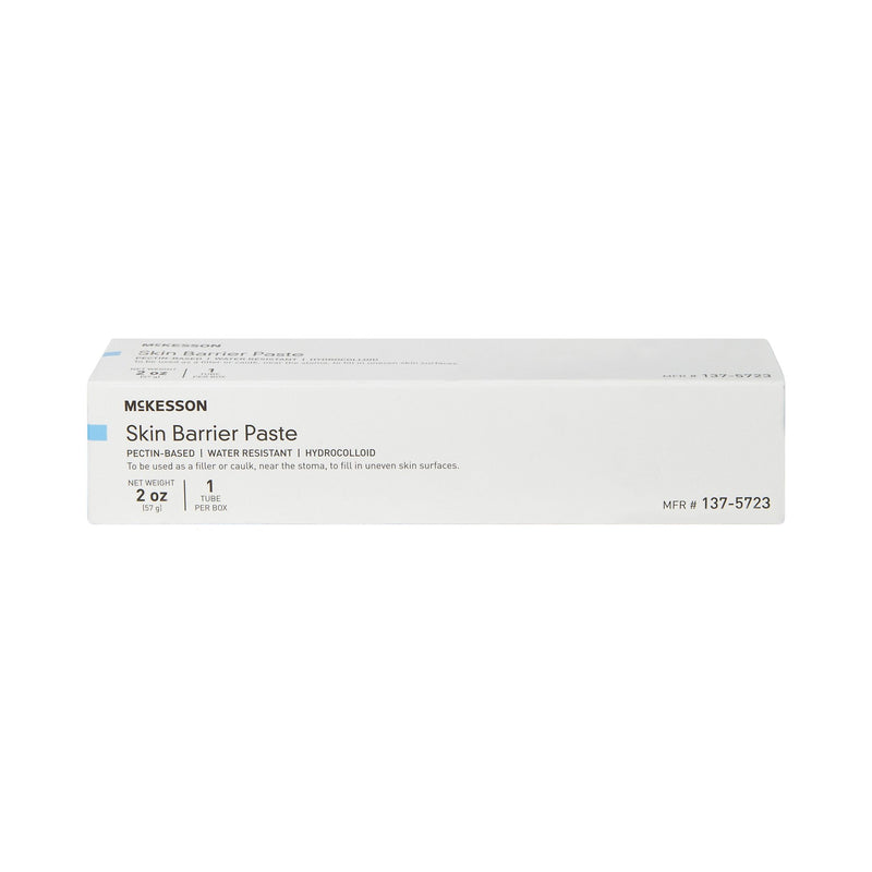 The McKesson Skin Barrier Paste is designed to provide a reliable and protective barrier for ostomy care. Its pectin-based formula creates an absorbent and protective layer on the skin, helping to reduce leakage by filling in creases and folds. This ensures a flatter surface for a secure fit, preventing drainage from breaching the ostomy skin barrier. The paste is quick and easy to apply, hardening upon application for immediate protection. It comes in an easy-to-squeeze tube with a screw-top lid and is not made with natural rubber latex.